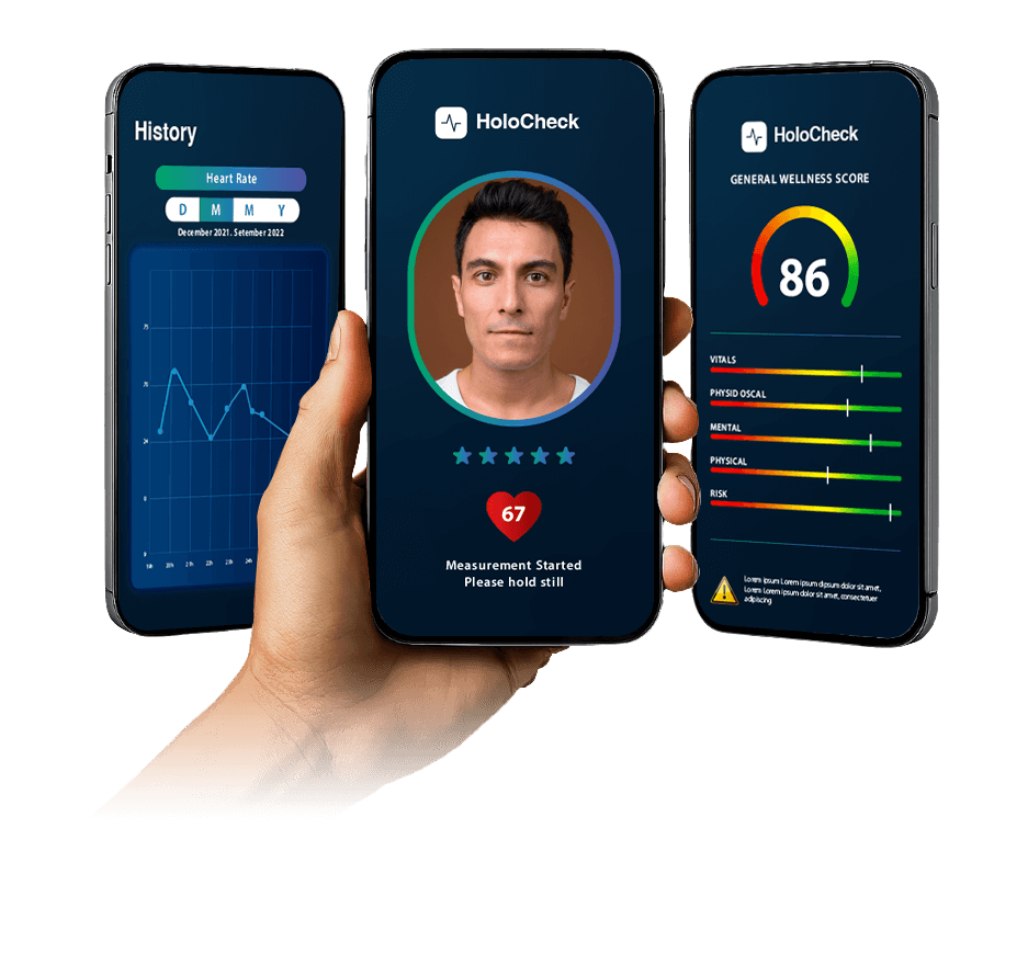 HoloCheck es una solución de salud digital que mediante inteligencia artificial, permite evaluar indicadores claves de bienestar y riesgos de salud en tiempo real, de forma rápida, accesible y no invasiva, impulsando la prevención y la toma de decisiones informadas en personas y organizaciones.